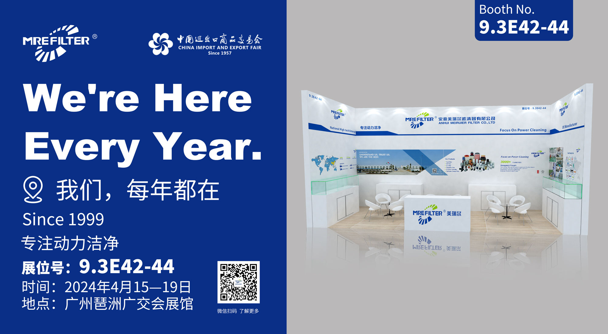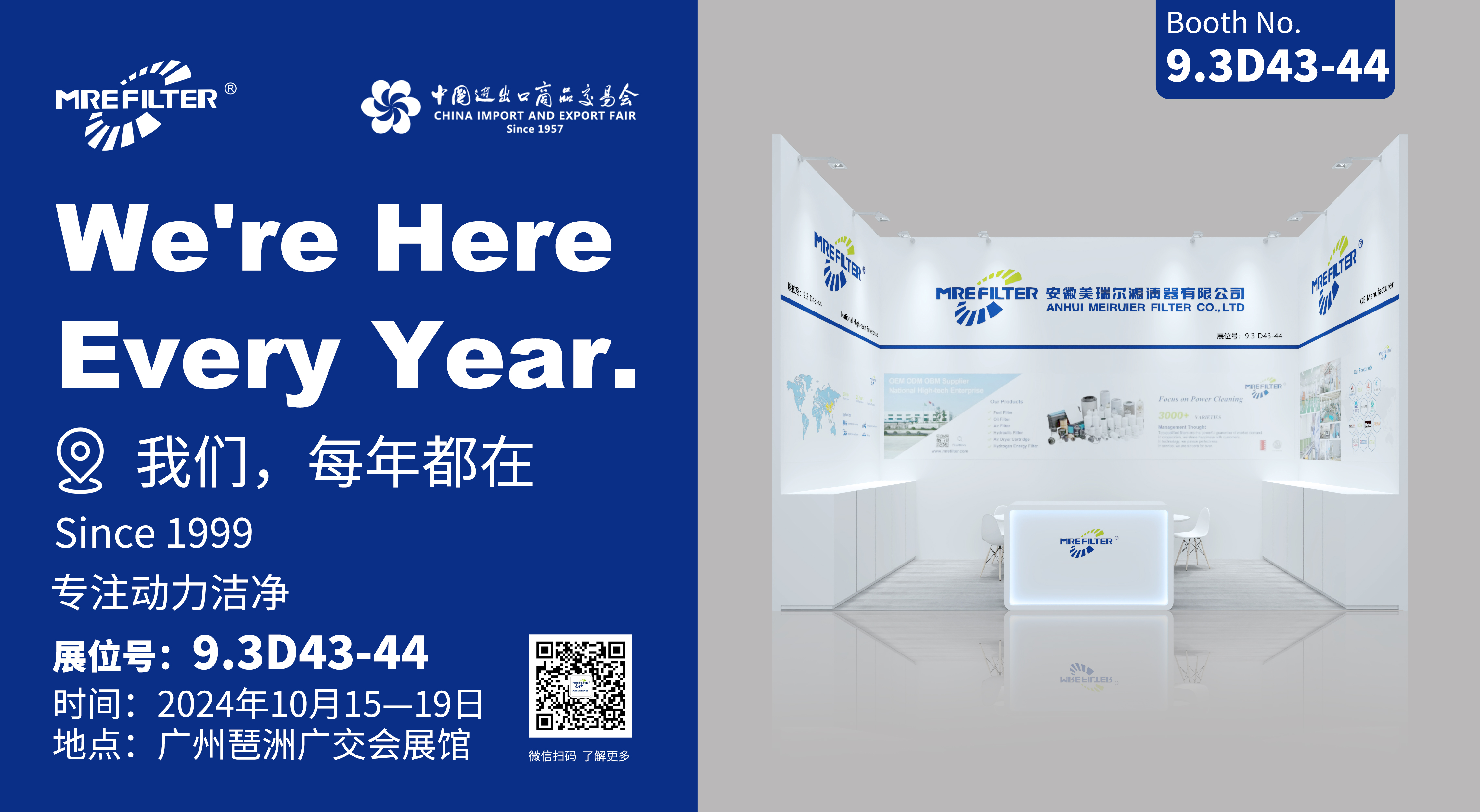 Exhibition announcement第136屆秋季廣交會(huì),將于2024年10月15-19日在廣州琶洲島廣交會(huì)展館盛大開(kāi)幕,展覽總面積達(dá)155萬(wàn)平方米。安徽美瑞爾濾清器有限公司將重裝亮相,展位號(hào)9.3D43-44,誠(chéng)摯邀請(qǐng)廣大國(guó)內(nèi)外客商朋友蒞臨...