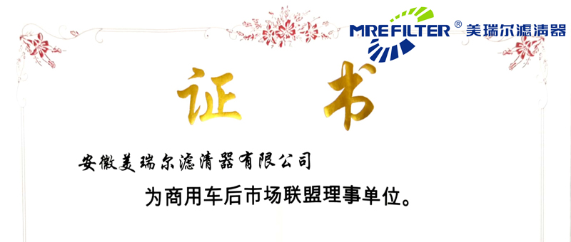2021-05-07安徽美瑞爾濾清器有限公司,經(jīng)專家評(píng)審,被評(píng)為商用車后市場(chǎng)聯(lián)盟理事單位,并獲頒由商用車后市場(chǎng)聯(lián)盟頒發(fā)的證書。