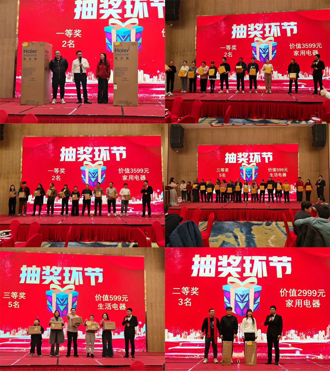 公司周年慶典,又怎能少得了精彩的抽獎節(jié)目呢?伴隨著美酒與佳肴,一輪接一輪的抽獎活動迅速掀起了年會的高潮。冰箱,金鏈,洗地機,熱水壺,保溫壺,香薰,零食,玩偶······ 各種禮品送不停,拿獎拿到手軟。