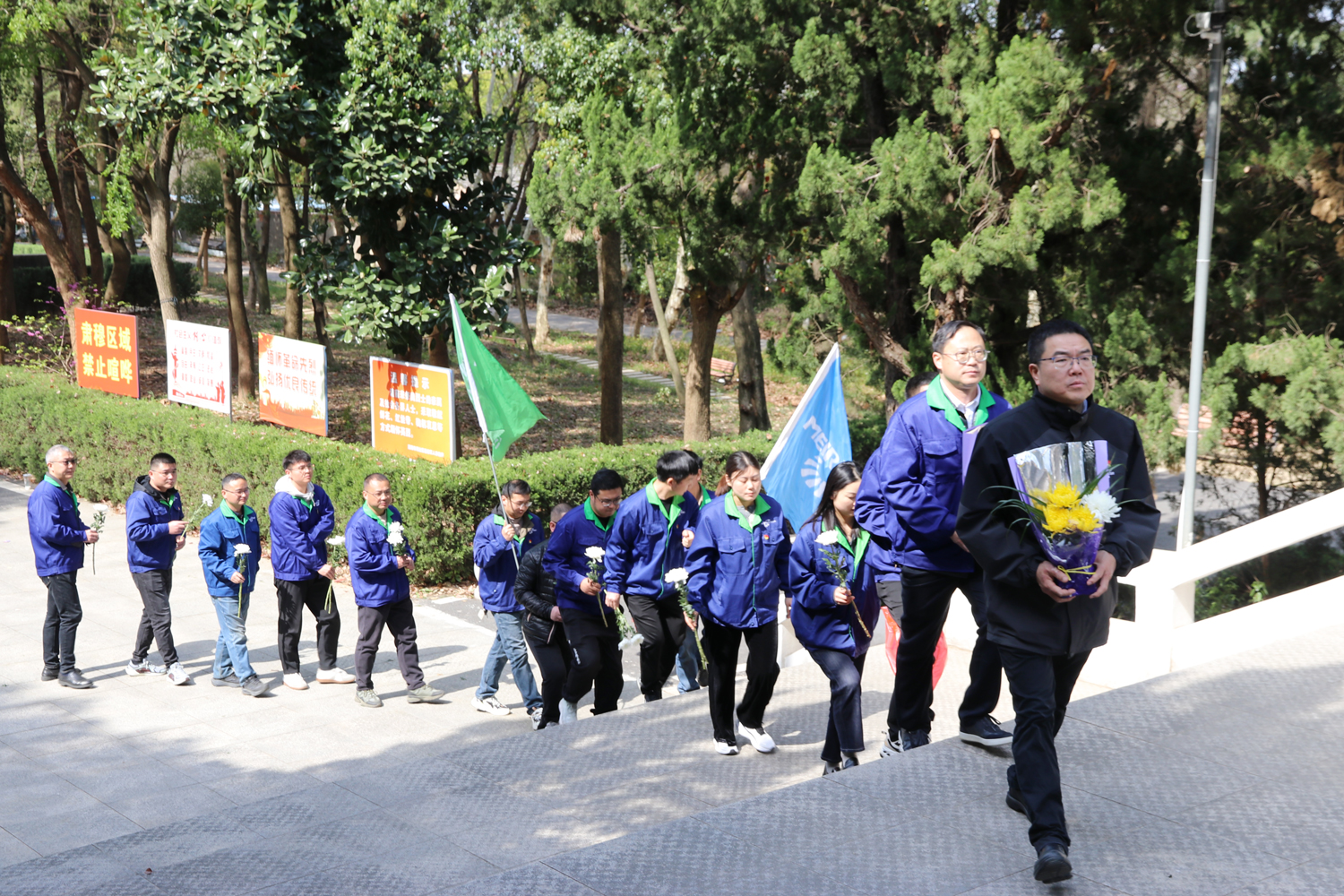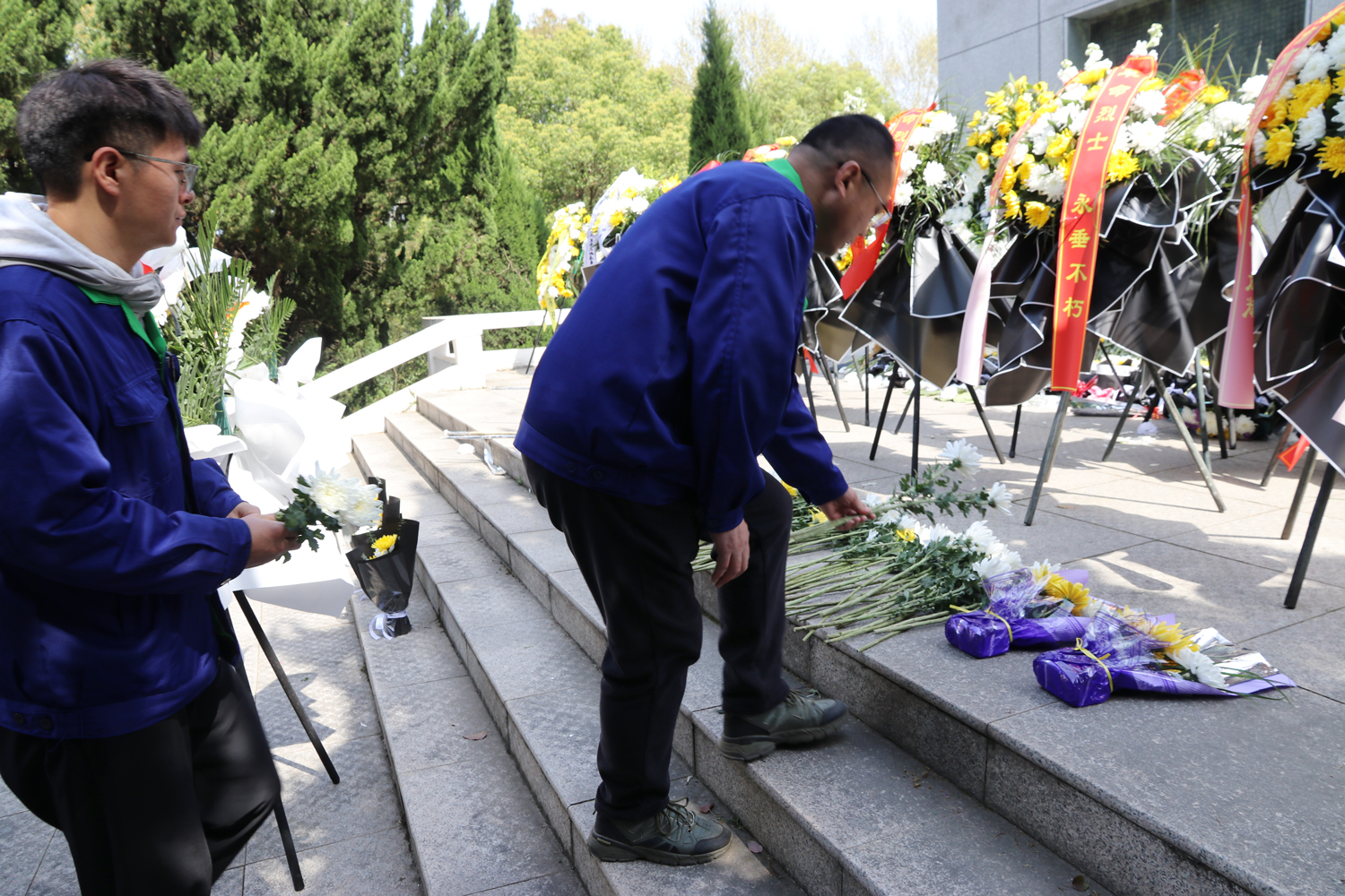 蒼松翠柏掩映下的烈士陵園莊嚴(yán)肅穆,革命英雄紀(jì)念碑巍然矗立。全體黨員整齊列隊(duì),面向革命烈士紀(jì)念碑肅立默哀,向?yàn)槊褡濯?dú)立、人民解放和國(guó)家富強(qiáng)英勇獻(xiàn)身的革命先烈致以崇高敬意。默哀結(jié)束,全體成員依次走向紀(jì)念碑,獻(xiàn)上手中鮮花,列隊(duì)繞行、瞻仰紀(jì)念碑,向長(zhǎng)眠于此的革命先烈致以最深切的緬懷與敬意。