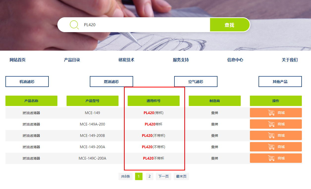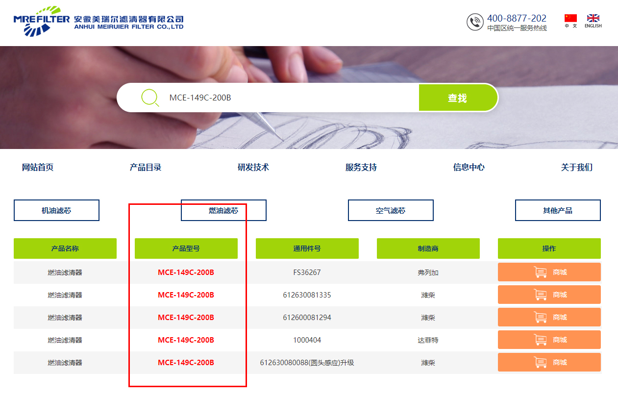 美瑞爾官網(wǎng)將濾清器種類精準(zhǔn)分類,選擇產(chǎn)品目錄,點(diǎn)擊你想查找的濾清器種類,就可以搜索到全部相關(guān)濾清器