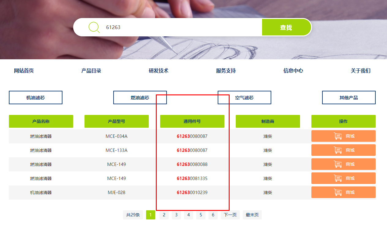 濾清器型號(hào)查找