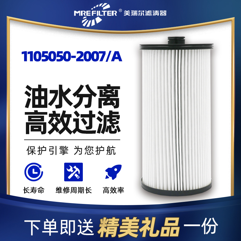 美瑞爾億利大炮濾芯1105050-2007采用多層復(fù)合納米纖維濾材,具有高達(dá)99%以上的水過濾效果和相應(yīng)的顆粒過濾效果,可以有效地保護(hù)發(fā)動機;維護(hù)成本低,油品正常和常規(guī)道路下,可以實現(xiàn)60000公里的維護(hù)周期,讓您省心省力省錢!!!