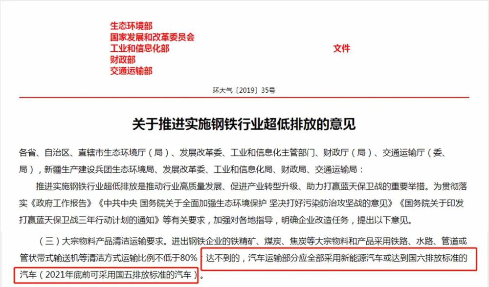 眼下國(guó)五車也同樣面臨一定的困境,受碳排放的壓力,此前生態(tài)環(huán)保部、工信部等聯(lián)合多個(gè)部門發(fā)布的《關(guān)于推進(jìn)實(shí)施鋼鐵行業(yè)超低排放的意見(jiàn)》中提及: