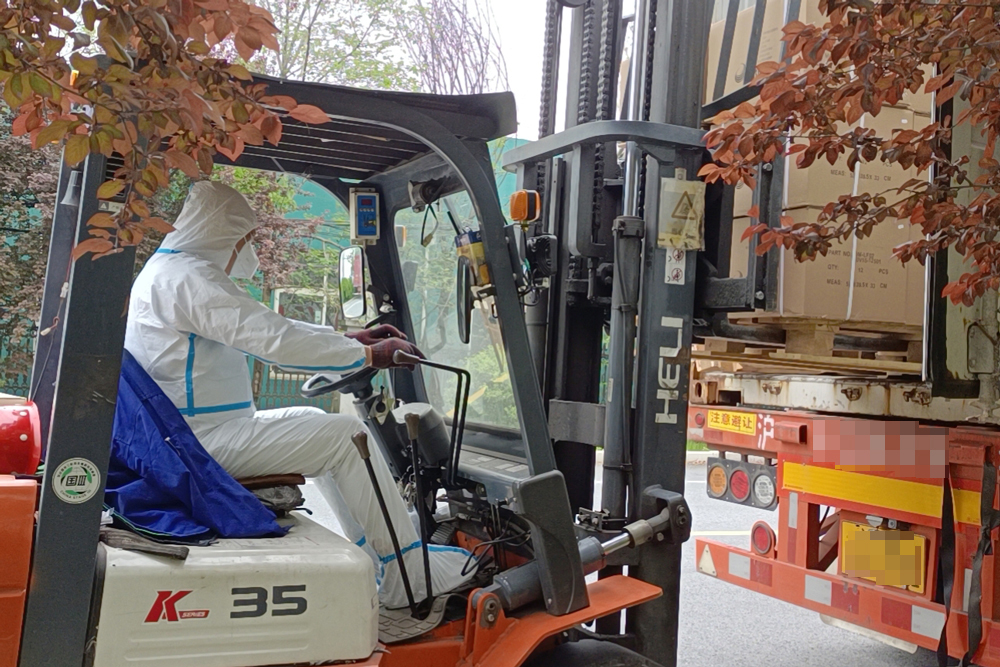 中高風(fēng)險(xiǎn)地區(qū)保供車輛無法進(jìn)入工廠,美瑞爾安排貨物送至高速路口,在高速路口志愿服務(wù)點(diǎn)進(jìn)行二次裝卸貨物。全程嚴(yán)格落實(shí)車輛閉環(huán)管理,遵守“司機(jī)不下車、全方位做好消殺、人員做好防護(hù)、接車送車全程閉環(huán)”。