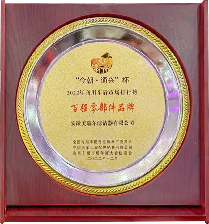 安徽美瑞爾濾清器有限公司憑借雄厚的實力,嚴格的質(zhì)量管理,優(yōu)質(zhì)的客戶服務(wù),良好的信譽及影響力榮獲2022中國商用車后市場排行榜“百強零部件品牌”榮譽稱號。