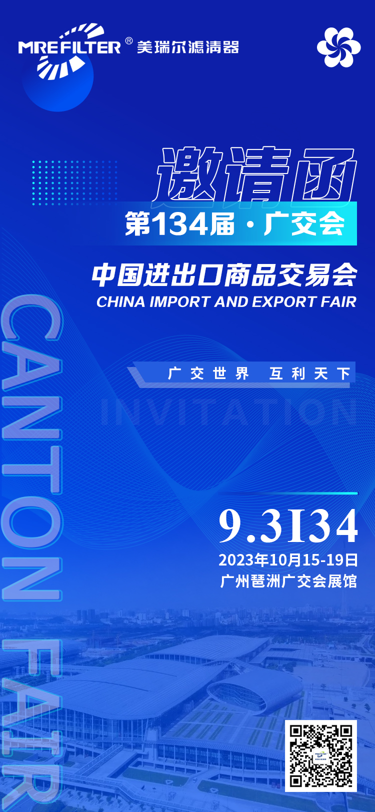 第134屆秋季廣交會Canton Fair,將于2023年10月15-19日在廣州琶洲島廣交會展館盛大開幕,安徽美瑞爾濾清器有限公司將重裝亮相,展位號9.3I34,誠摯邀請廣大國內(nèi)外客商朋友蒞臨展位參觀交流!