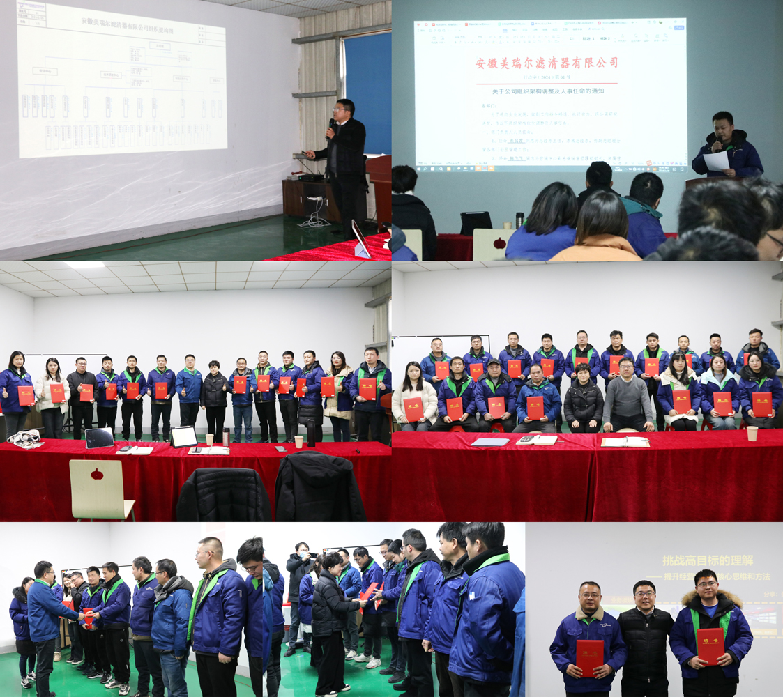 以目標(biāo)激發(fā)動力,用實干擔(dān)當(dāng)作為。為進一步明確年度工作目標(biāo),強化責(zé)任落實,1月26日,安徽美瑞爾濾清器有限公司召開2024年度目標(biāo)簽約大會,部署規(guī)劃2024年經(jīng)營目標(biāo),簽訂2024年度各業(yè)務(wù)板塊目標(biāo)。