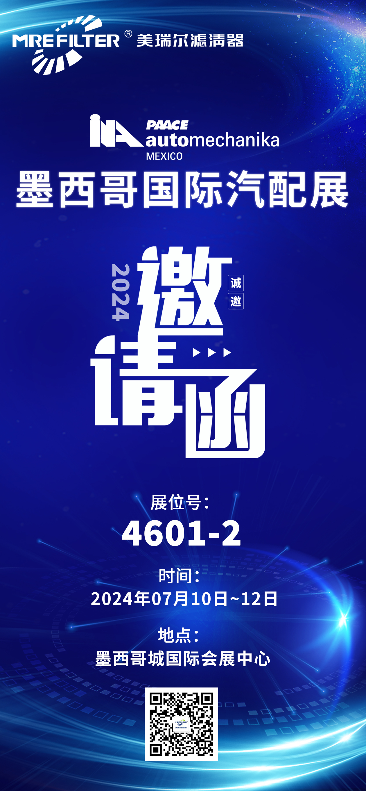 2024年墨西哥國(guó)際汽配展將于7月10日至7月12日在墨西哥城國(guó)際會(huì)展中心隆重舉辦,安徽美瑞爾濾清器有限公司展位號(hào)4601-2,誠(chéng)摯邀請(qǐng)廣大國(guó)內(nèi)外客商朋友蒞臨展位參觀交流!